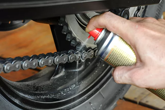 Successivamente, è importante lubrificare la catena per garantire che scorra un’ottima fluidità. Lubrificare la catena vi aiuterà a ridurre l’usura e gli attriti, inoltre renderà la vostra guida più fluida. Il lubrificante da utilizzare per la catena della moto varia a seconda della marca e del modello della moto. È quindi importante scegliere il prodotto corretto per garantire una lubrificazione corretta. Dopo l’applicazione del lubrificante è possibile utilizzare un panno per rimuovere eventuali eccessi di prodotto in eccesso e prevenire la sporcizia.