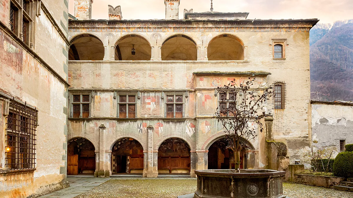 Costruito a fine XIV Secolo su una preesistente villa romana, il Castello di Issogne è legato alla famiglia nobile dei Conti di Challant, che hanno portato il maniero al massimo splendore, tanto che è stato frequentato anche dall’imperatore Sigismondo di Lussemburgo e dal Re di Francia Carlo VIII. È a questo periodo che risale la celebre fontana del melograno, realizzata con l’albero in ferro battuto al centro di una vasca ottagonale in pietra. Seguì un periodo di declino, finché, nell’Ottocento, il pittore torinese Vittorio Avondo acquistò la struttura e intraprese le opere di restauro. Oggi è uno dei castelli più famosi della Valle d’Aosta; è aperto alle visite e il biglietto costa 10 euro. Curiosità: una copia della fontana del melograno si trova nel “Borgo Medievale” di Torino, costruito in occasione dell’Esposizione Internazionale del 1884, sotto la cura dello stesso Avondo.