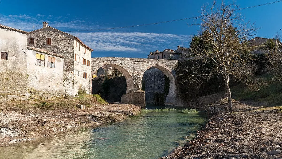 Il fiume è in posizione defilata, ma vale la pena raggiungerlo, per vedere l’imponente ponte romanico a tre arcate che scorre sul Metauro e scoprire un’altra parte del centro storico fatta di case in pietra e vie strette che richiamano il passato medievale.