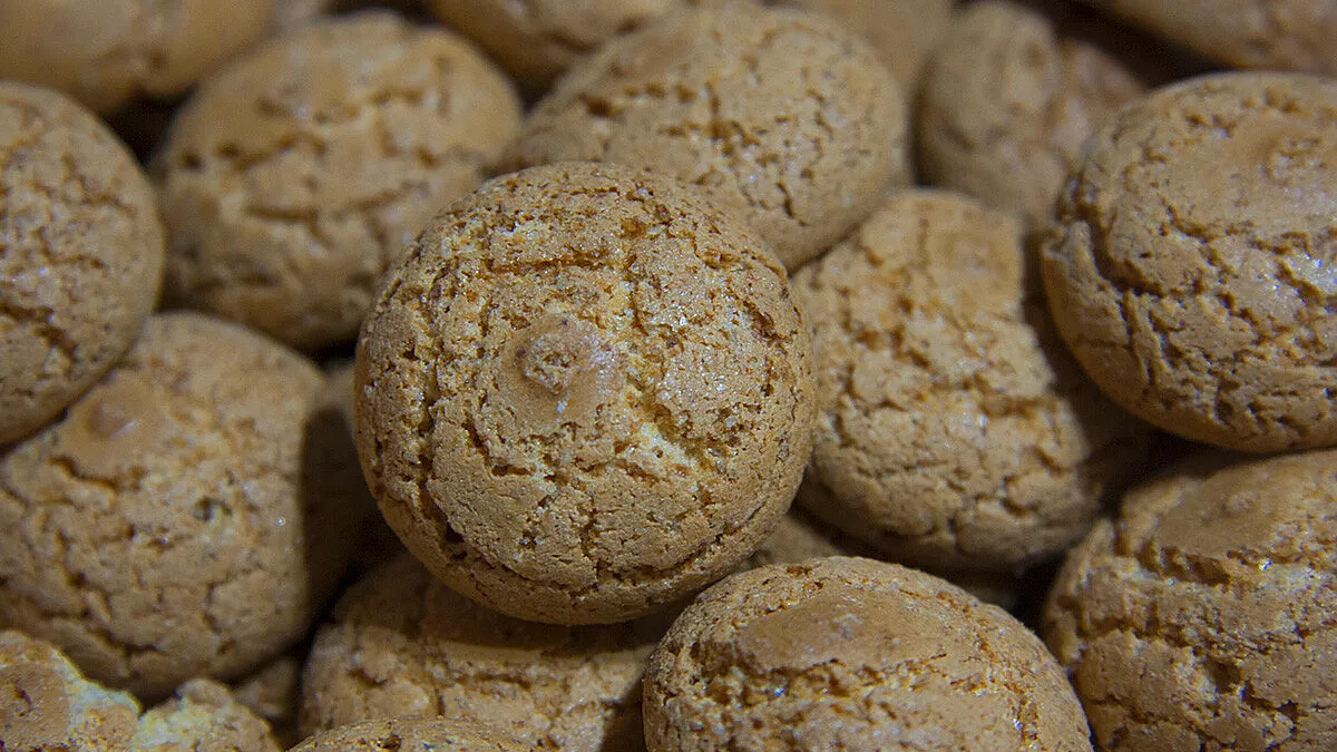 Ammollare le mandorle in acqua bollente, spellarle, passare al forno, pestarle in un mortaio e mescolarle con lo zucchero in una terrina. Sbattere a neve i bianchi d’uovo e unirli poco alla volta alle mandorle, mescolando delicatamente. Sistemare i dischetti di ostia su una placca spolverizzata di farina e disporvi l’impasto in mucchietti di forma ovale. Infornare a 180° per 30 minuti.