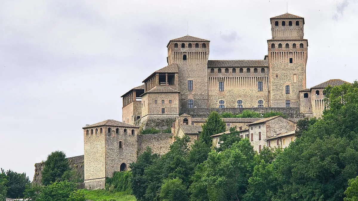Nel novero dei Castelli del Ducato di Parma, Piacenza e Pontremoli, il Castello di Torrechiara spicca in maniera speciale per la sua sagoma scenografica che si staglia su un costone roccioso. Si tratta di uno tra gli esempi più significativi dell’architettura castellare italiana. Costruito nel XV secolo, ha tratti architettonici sia medievali che rinascimentali. Accanto al maestoso maniero si trova il piccolo borgo medievale di Torrechiara, frazione di Langhirano. Non mancano le leggende di fantasmi: lo spettro di Pier Maria II de’ Rossi (il Conte che ordinò la costruzione dell’edificio) si aggirerebbe alla ricerca dell’amata Bianca Pellegrini (la compagna con cui visse in queste stanze), ripetendo il motto Nunc et semper. L’ingresso all’edificio ha un costo di 5 euro.