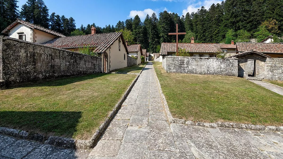 Collocato nel comune di Poppi e circondato dai meravigliosi scenari del Parco Nazionale delle Foreste Casentinesi, Monte Falterona e Campigna, il Sacro Eremo di Camaldoli fu fondato nell’anno 1012 dall’eremita Romualdo. Il benedettino voleva “aggiornare” la regola del suo ordine, prevedendo un maggiore ricorso alla contemplazione mistica, ma sempre in un ambito di comunità religiosa. Insomma, pregare ma insieme in luoghi il più possibile lontani dalla città, come appunto Camaldoli. Questo complesso oggi ha più di mille anni di storia ed è composto da diversi edifici di notevole interesse storico e spirituale.