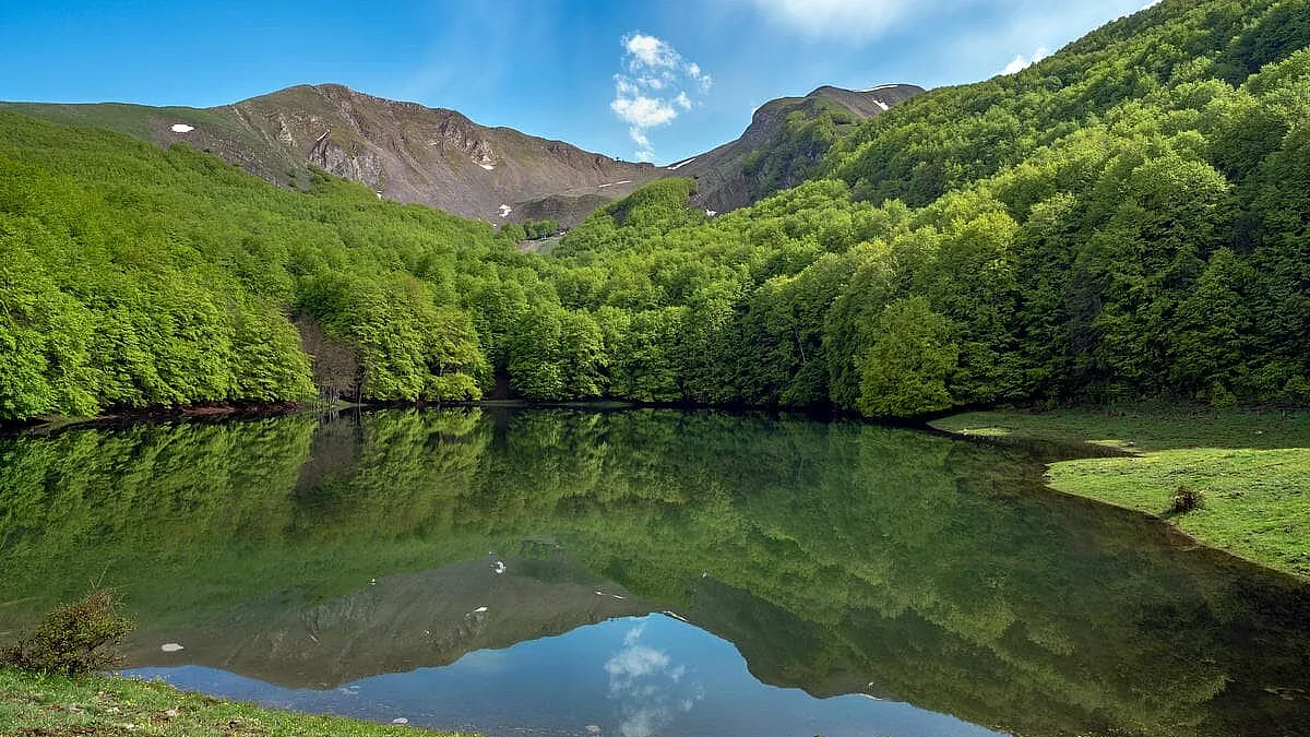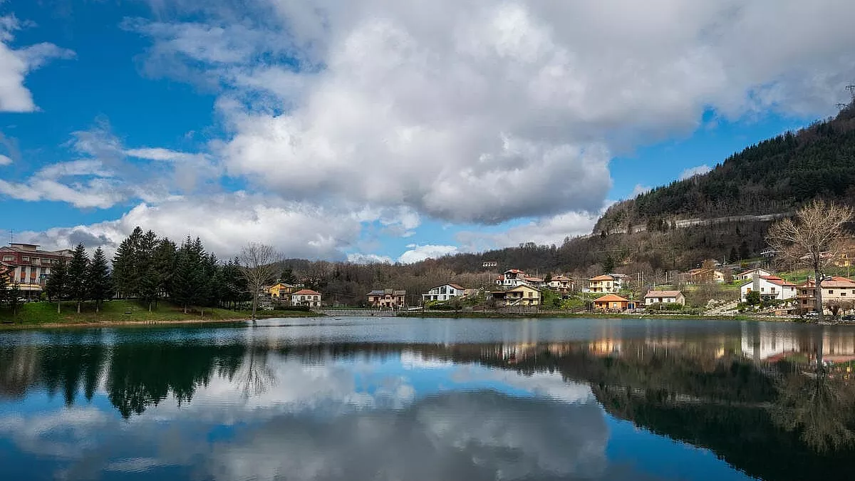 Dopo circa 10 chilometri, si raggiunge la destinazione: la Riserva Regionale Lago Laudemio. Il sito sorge ai piedi del Monte Papa, a 1.520 metri circa di altitudine. Lago di origine glaciale situato in una conca morenica, il Laudemio è circondato da un fitto bosco di faggi e ontani d è abitato da lupi, trote e salamandre.
