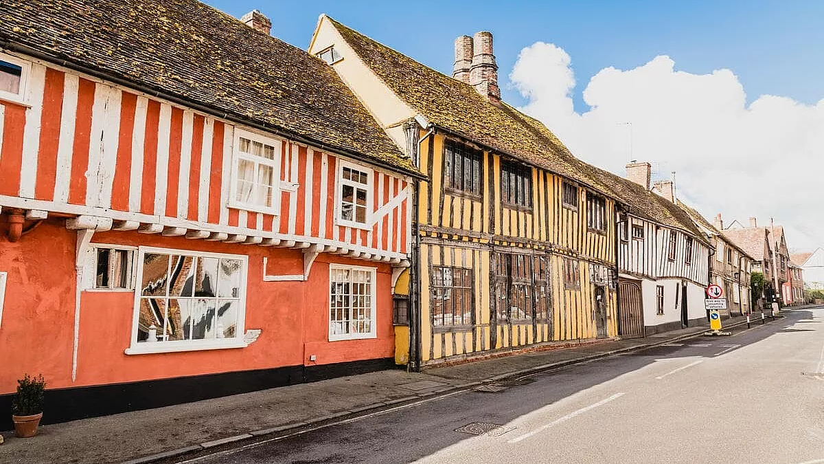 Il fascino medievale di Lavenham risiede nelle strutture a graticcio che sembrano sul punto di crollare da un momento all’altro, eppure resistono da centinaia di anni. Come si spiega il mistero? È una peculiarità architettonica; la risposta va cercata nel periodo d’oro del commercio della lana, fra XIV e XV secolo. All’epoca, la zona era uno degli insediamenti più ricchi d’Inghilterra e la prosperità portò a un boom edilizio senza precedenti. I mercanti, desiderosi di mostrare la loro ricchezza, commissionarono case sempre più elaborate.