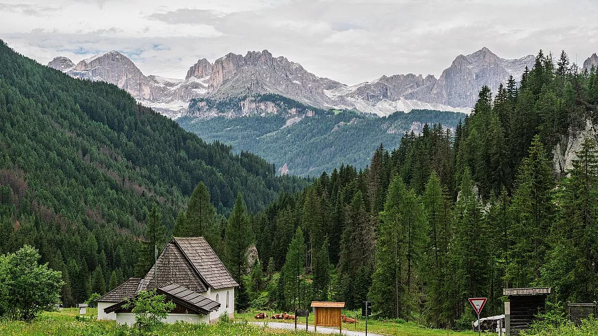 Per le escursioni, c’è il sentiero Viel del Pan, che regala scorci sulla Marmolada e sul Lago di Fedaia. Il percorso finisce a Moena, la Fata delle Dolomiti, un borgo fiabesco all’ingresso della Val di Fassa, circondato dal Latemar e la Vallaccia. Il centro storico è bello colorato e qui bisogna assolutamente visitare la Chiesa di San Vigilio , col campanile gotico e gli affreschi di Valentino Rovisi; merita una menzione anche la vicina Chiesetta di San Volfango, con un soffitto barocco in legno. Moena forse lo conosci per il Puzzone di Moena, formaggio DOP molto intenso e aromatico, simbolo gastronomico del Trentino.