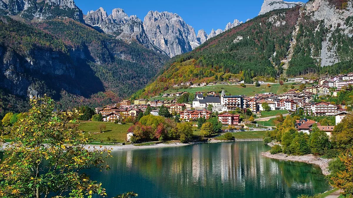 Circondato dalle maestose cime delle Dolomiti di Brenta, il Lago di Molveno è uno di quei luoghi che sembrano disegnati da un pittore con una tavolozza perfetta: azzurro intenso dell’acqua, verde brillante dei boschi e bianco delle cime rocciose sullo sfondo. Non è un caso se, da anni, viene celebrato come uno dei laghi più belli e puliti d’Italia, premiato anche da Legambiente per la qualità delle acque e la cura del paesaggio.