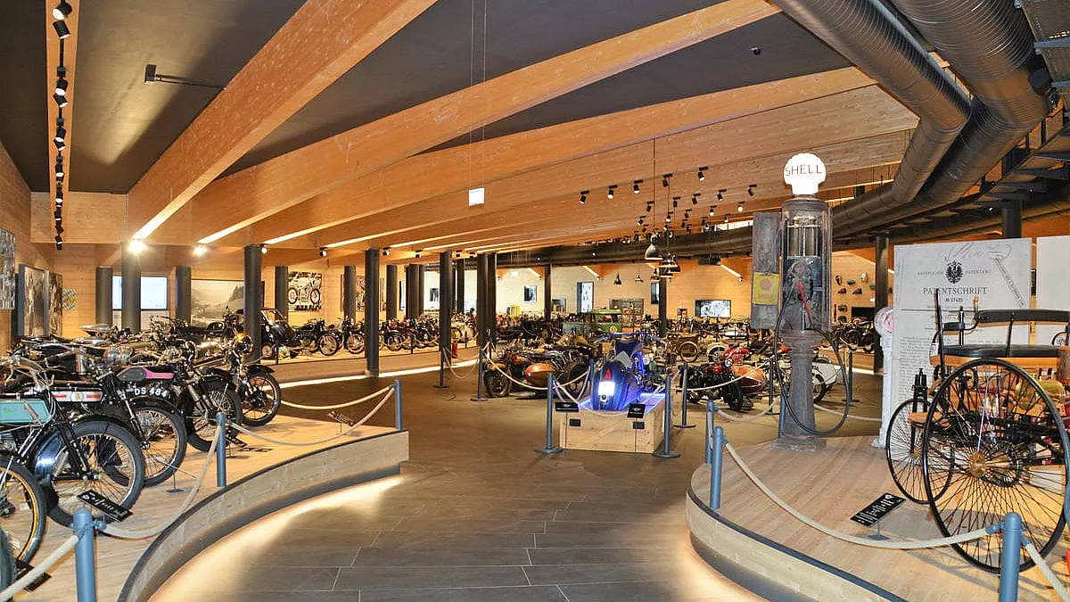 Le moto erano originariamente esposte in un edificio moderno, progettato per integrarsi con l’ambiente circostante e adatto ad accogliere le centinaia di pezzi da collezione che i gemelli Scheiber avevano raccolto nel corso degli anni. Non solo la collezione, ma anche la restaurazione e la manutenzione delle moto collezionate è stata ad opera dei due fratelli.