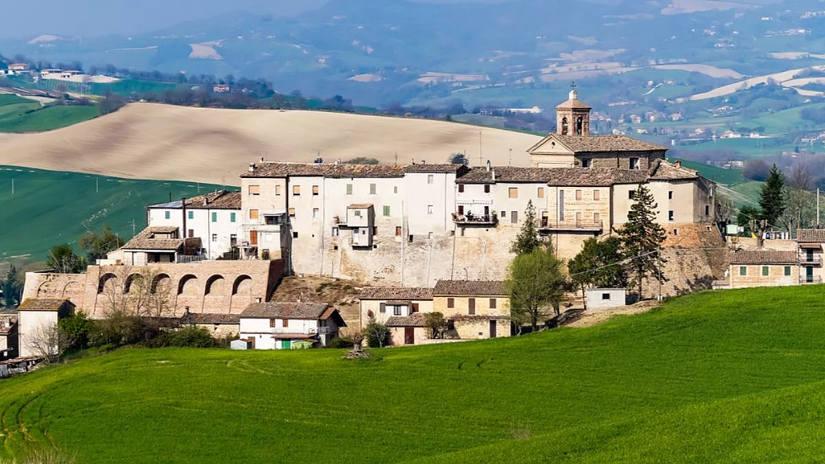 Palazzo d’Arcevia è forse il più “borgo” tra questi nove castelli: una serie di case ed edifici arroccati su una collina, che spunta quasi all’improvviso tra i boschi dell’Anconetano. In cima all’abitato, la Chiesa dei Santi Settimio e Stefano domina tutto il complesso, e regala dei panorami che fanno bene agli occhi e al cuore. Un vero ventaglio di emozioni, di vicoli stretti e di ampie vedute sulle zone circostanti.