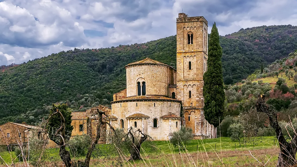L’Abbazia di Sant’Antimo, nelle campagne fuori dal centro di Montalcino.