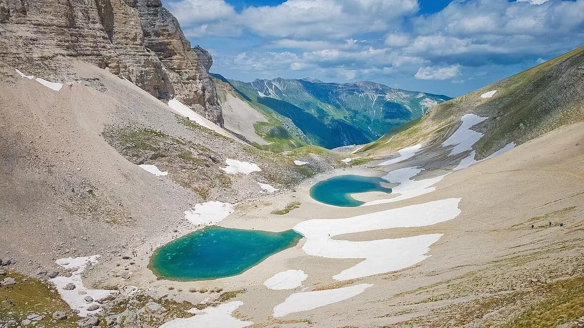 Viene chiamato “il lago con gli occhiali”, perché è composto da due bacini rotondi, la cui ampiezza varia a seconda delle precipitazioni. Il Lago di Pilato è un lago glaciale di tipo alpino – unico naturale nelle Marche – che si trova sul Monte Vettore, nel Parco Nazionale dei Monti Sibillini, a un’altitudine di 1.941 metri s.l.m. Il comune di appartenenza è Montemonaco. L’escursione per raggiungerlo è impegnativa ma paesaggisticamente molto bella e ci sono tre percorsi, che partono dalla frazione di Foce, da Arquata del Tronto e da Castelluccio (sentiero più lungo). La balneazione è vietata.