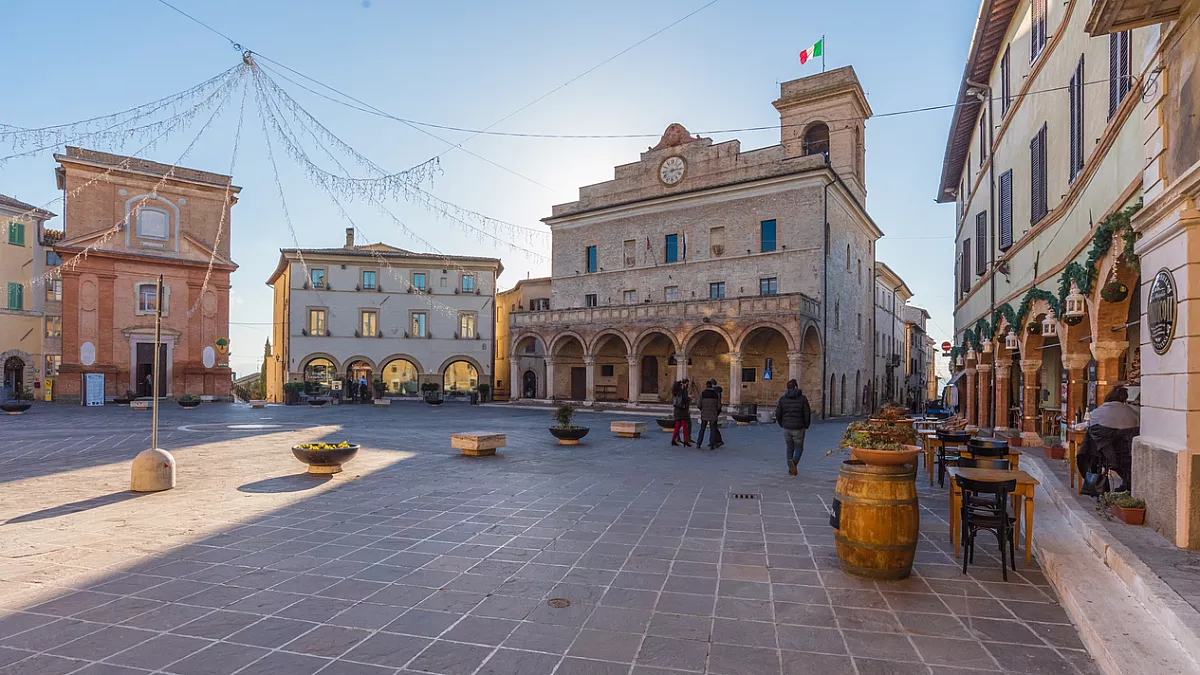 In provincia di Perugia a 472 m s.l.m., Montefalco ha origini antiche e una struttura urbanistica medievale, con mura del XIII secolo, in parte conservate, che racchiudono un centro storico compatto e facilmente visitabile a piedi. Per la sua posizione dominante, nei secoli ha avuto un ruolo strategico di controllo sulla valle sottostante. Oggi ha cinquemila abitanti, si fregia della Bandiera Arancione del Touring Club Italiano e fa parte dei Borghi Più Belli d’Italia.