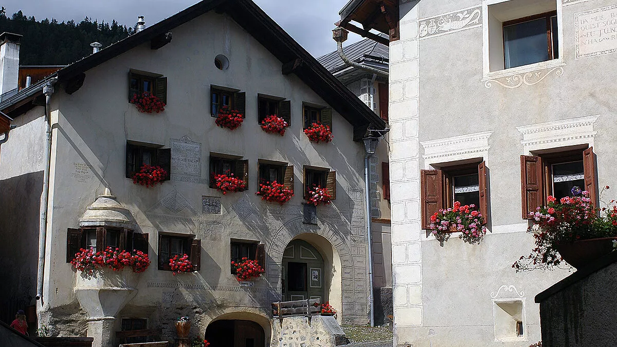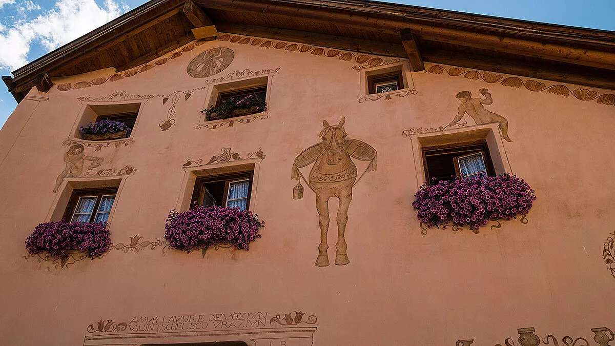 Ciò che subito colpisce una volta arrivati qui sono le case tradizionali engadinesi. Abitazioni tipiche decorate con la tecnica, di epoca rinascimentale, dello “sgraffito”, che consiste in motivi ornamentali intagliati nella superficie delle facciate. L’intento è quello di raccontare storie di vita quotidiana, simboli antichi e decorazioni floreali. Questi “sgraffiti” trasformano l’intero villaggio in un quadro vivente, con colori che sembrano veramente usciti da un libro delle favole.