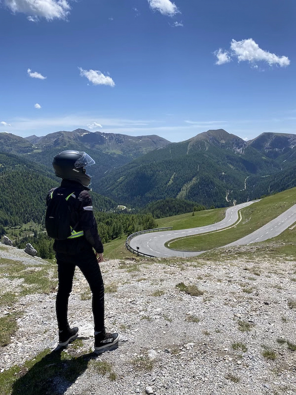 È arrivato il momento di fare i bagagli e organizzare la strada del ritorno. Lasciamo l’albergo e ci dirigiamo verso il nostro obiettivo di giornata: la Nockalm Strasse. La strada da percorrere oggi è lunga, impostiamo il navigatore con la nostra tappa finale. Stavamo seguendo le indicazioni per la strada del Nockalm quando abbiamo deciso di fare una strada secondaria ed è così che abbiamo scoperto la Katschberg-Strasse, una fantastica strada in mezzo al bosco ripidissima, sia in salita che in discesa… proseguiamo e raggiungiamo la strada alpina Nockalmstrasse. La strada è a pagamento, ma è un meraviglioso percorso di 43 km che attraversa 52 tornanti all’interno di un parco naturale. Potrete ammirare incantevoli panorami montani, laghi, boschi… mucche e marmotte. Lungo la strada alpina si possono fare molte escursioni e rifocillarsi in numerose baite montane, assaporando le delizie del posto e della cucina Carinziana. Per bikers e ciclisti nel punto più panoramico della Nockalmstraße ci sono degli armadietti per poter lasciare le vostre cose (casco, giacche) e passeggiare tranquillamente.