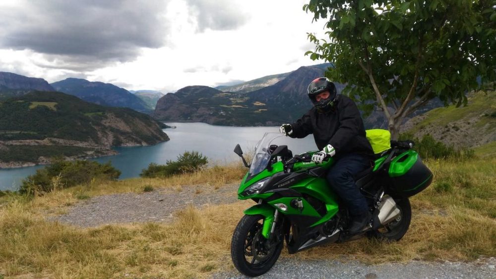 Max e la sua bellissima Z1000SX sulle rive del Lago di Serre-Pocon