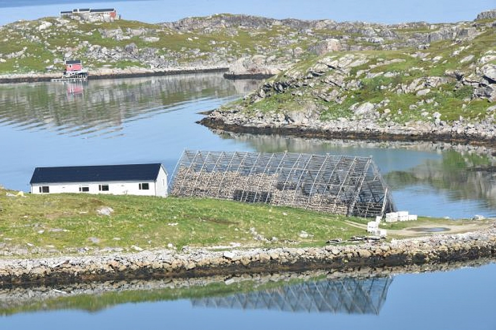 Intorno alle 11,00 riparto dal Capo; ho deciso che visiterò i tre paesi del promontorio. Deviando dalla E69, raggiungo Gjesvaer: la strada per arrivare si sviluppa lungo un altipiano pietroso, aspro, chiazzato di laghetti originati dallo scioglimento dei nevai, in un contesto paesaggistico solitario che incute rispetto ed invita al silenzio. Improvvisamente, dopo una curva, lo scenario si apre e sullo sfondo appare il piccolo borgo adagiato sulla riva del mare e circondato da montagne. Il mare è piatto, azzurro, trasparente e tutto vi si riflette; le case, i pescherecci, i fianchi verdeggianti delle montagne.