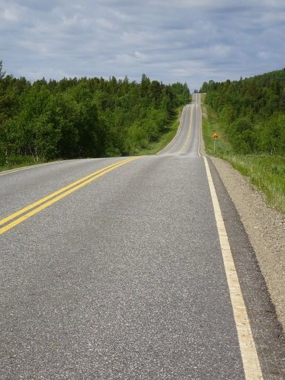 Da Sodankylä sono partito presto, alle 7,30, sulla Strada E75 direzione Ivalo, Inari e sino alla città di Kaamen, alla cui periferia si devia per la strada 92 che porta verso la Norvegia. Alla partenza la temperatura è gradevolmente fresca, nel corso della giornata aumenta ed è insolitamente caldo, anche oggi.