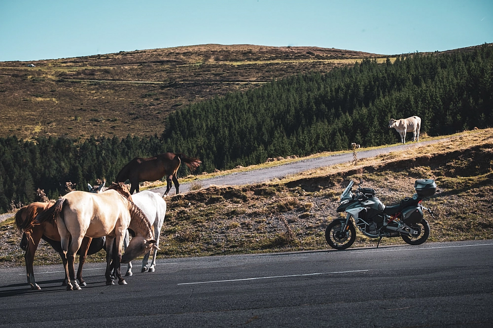 Passato il gregge si prosegue verso il versante francese, direzione Sarrance. Scendendo verso la valle il paesaggio torna lentamente ad essere boscoso ma resta uno dei più bei paesaggi visti fin ora, senza contare che la strada D934 è in ottimo stato e con un grip degno di nota.