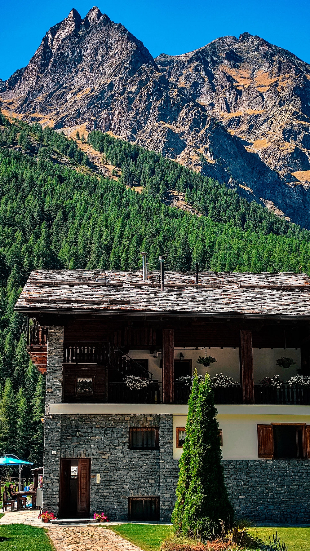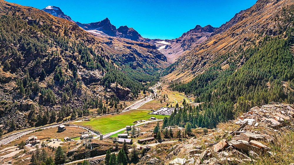 Terminata la visita del castello di Issogne, abbiamo proseguito il nostro viaggio verso il campeggio Pont Breuil. Abbiamo imboccato la statale SS26 ancora ignari delle sorprese che ci avrebbe riservato: dietro ogni curva si nascondeva una cascata, uno scorcio panoramico sulle montagne, un castello abbarbicato sulle rocce o una chiesa dal fascino antico. Ammirare questo panorama alla luce del tramonto ci ha davvero incantato. Ci siamo fermati a cenare in una pizzeria lungo la strada e, dopo aver affrontato gli ultimi tornanti, siamo arrivati al campeggio alle 22. Dopo aver parcheggiato la moto, montato la tenda e gonfiato i materassini, ci siamo finalmente coricati, stanchi ma davvero appagati.