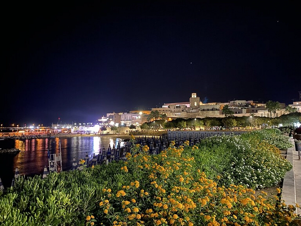 Finalmente arriviamo alla destinazione finale di oggi, Manfredonia, dove per fortuna ci aspetta una fresca oasi di palme, e dedichiamo la serata alla scoperta della città, la prima delle tante “bianche” pugliesi che ci aspettano.