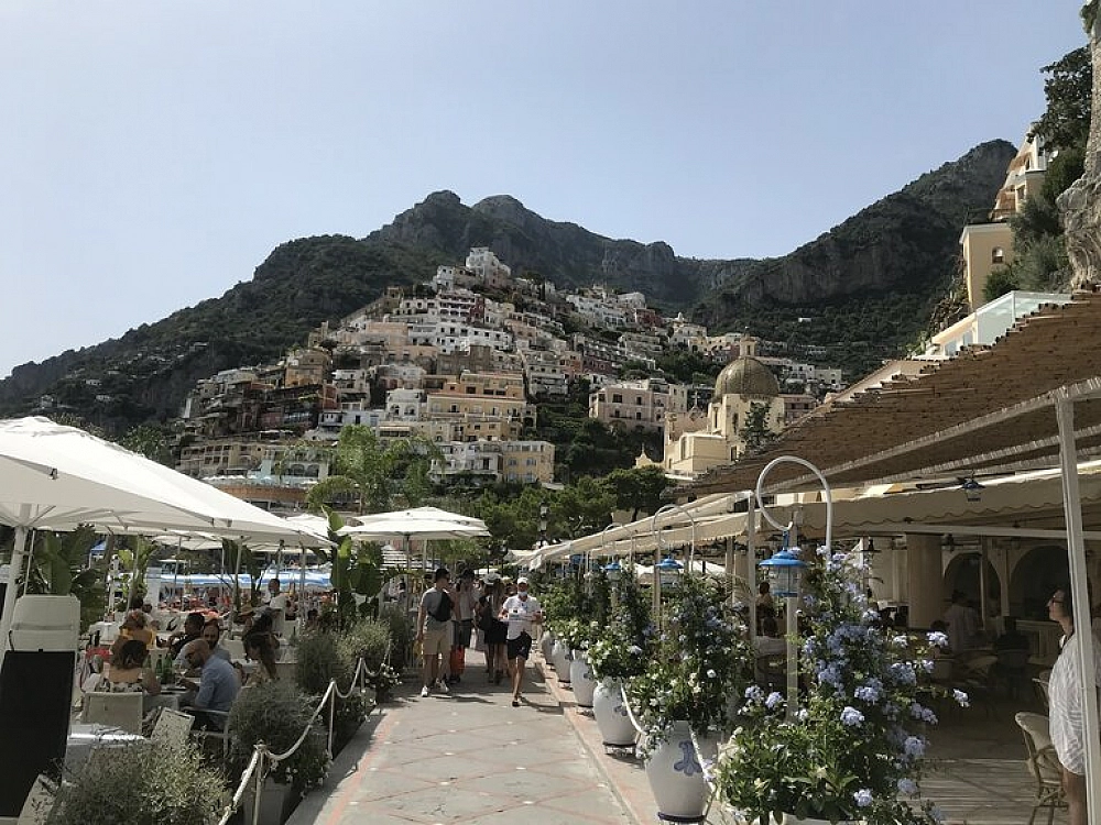 Riusciamo a fermarci almeno a Positano, che però in estate non è affatto come in altri periodi più tranquilli dell’anno: così caotica e strapiena di turisti, ombrelloni, bancarelle, musica, rumori ed imbarcazioni di ogni tipo, sembra ancora più piccola, anche se incantevole.
