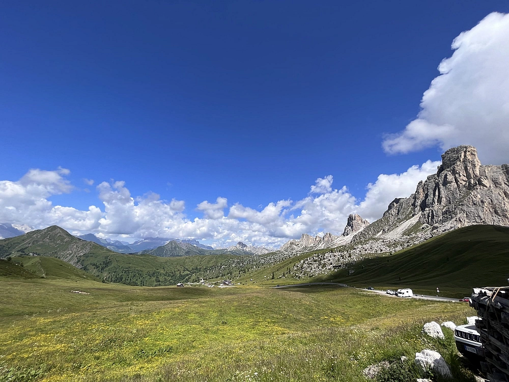 Con lo stomaco in pace col mondo dopo essersi riempito di un croissant alla Nutella, mi rimetto in sella in direzione della prima vera tappa del viaggio: il Passo Giau.