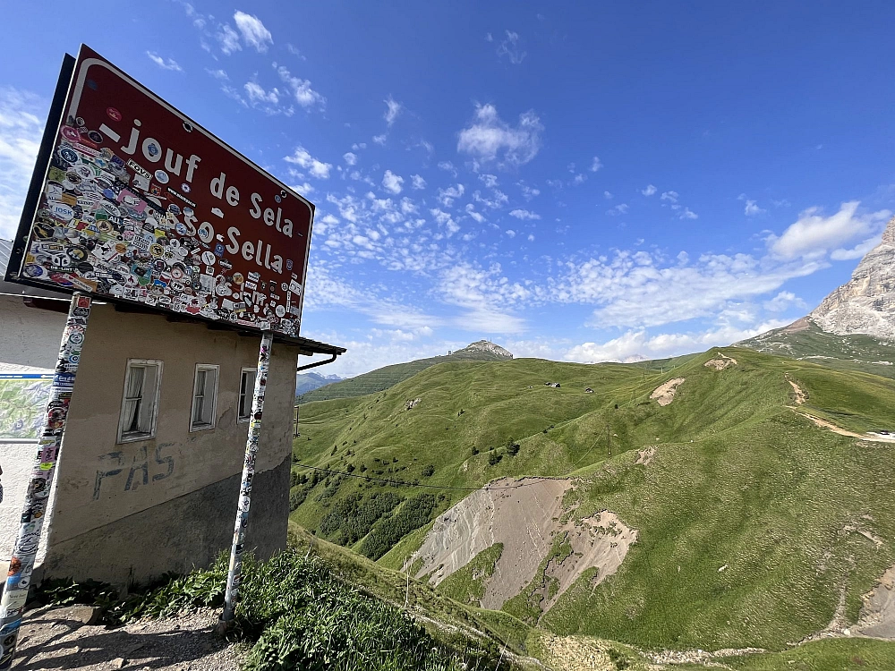 Tenendo un ritmo turistico con le immancabili pause fotografiche e di ristoro, percorro i quattro passi in quest’ordine: Passo di Campolongo (SS244), Passo Pordoi (SR 48), Passo Sella (SS242) e Passo Gardena (SS243).