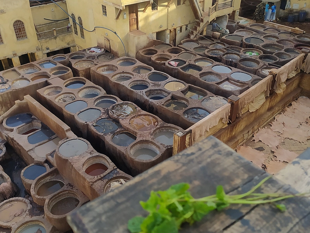 Si parte al mattino presto per FES, una delle città imperiali del Marocco, dove visitiamo l’antica Medina e il quartiere dei tintori e degli odori, obbligatorio l’utilizzo della menta fresca da “sniffare”  per contrastare il forte odore della concia delle pelli.