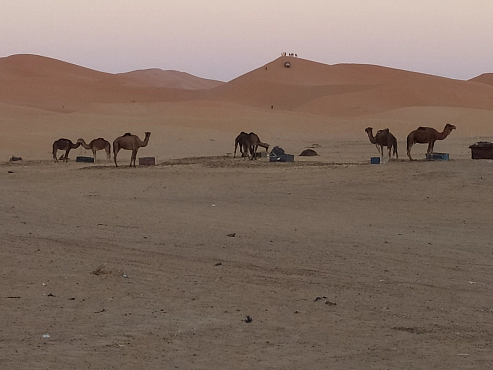 Ci si prepara ad una delle tappe più entusiasmanti del viaggio: destinazione il deserto dell’Erg Chebbi ai confini dell’Algeria, nel profondo sud del Marocco. In direzione Midelt, attraversiamo foreste di cedri fitte e spettacolari, fino ad arrivare ad Azrou. In questo posto caratteristico siamo accolti da numerose scimmie che per una nocciolina si fanno docilmente fotografare.  Il paesaggio in direzione sud, caratterizzato da numerose oasi, cambia in maniera repentina sotto le nostre ruote, attraversiamo la verde valle Du Ziz caratterizzata da numerose oasi, per arrivare ai piedi delle spettacolari dune rosse dell’ Erg Chebbi di Merzouga, scenario che ci ospiterà per la notte. La visione del cielo notturno nel deserto è spettacolare !