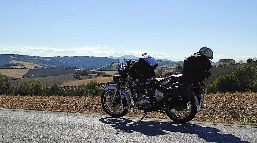 Ci risiamo: prendi un progetto, inizia a studiarne i dettagli fin da Settembre 2019; pianifica, organizza, considera. Fatto? Ok, ora chiudo il faldone e rinvia, rinvia, rinvia. Virus, limitazioni, la vita che non è più normale, colori (ma di quelli non belli da apprezzare con i sensi), vincoli, rischi, mancanze, sofferenze. Il Covid e tutto il suo corollario di strascichi sposta tutto giocoforza ma le motivazioni e le ragioni iniziali restano invariate, fra sospiri ed attese. Serve altro ora, perché dopo i brutti momenti passati vogliamo saldare i debiti con la memoria, ripensando a tutti i “Eh, ma ad averlo saputo prima!”, “Guarda cosa c’era qui vicino”, “Peccato, non abbiamo fatto in tempo “, “Casomai un’altra volta!” sfiorati nel corso degli anni. Si, perché in realtà viaggiamo dal 2014 con un trittico immutato: “Andrea e Sonia in Royal Enfield“. Andrea, comandante autonominato, sopportato e supportato da Sonia, Prima Ufficiale, entrambi in sella alla Royal color d’Argento, una RE Classic 500 che da sempre ci spinge e ci sprona a riassaporare territori ed emozioni col suo inconfondibile lentocedere ed il suo thump thump borbottante. Sorridendo senza fretta percorriamo giringiro il Paese più bello del mondo, affrontando cime, cime e ancora cime reali e figurate, spronando e condividendo il Bello (che, si sa, se goduto da tutti diventa ancora più bello). l’Italia che è sempre stata palcoscenico dei nostri viaggi a lungo raggio, non come piano di riserva o vetrina di visibilità magari a pagamento, ma tant’è; Italia che riassaporeremo con lo sguardo creditore di ricordi ed emozioni. Se non ora quando, appunto. In sella!