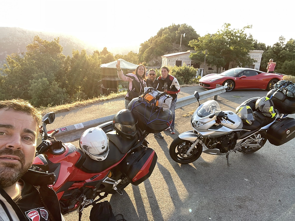 Aiuto a legare la moto al mio amico Lorenzo, lego la mia Multistrada e ci siamo, si parte! Riunirci tutti insieme non è facile, abbiamo lasciato i nostri cellulari alle signore e non le possiamo chiamare ma anche questo fa parte del gioco, la scusa di ritrovarle è l’occasione per cercare i vari posti tattici per passare le 7 ore di traversata.