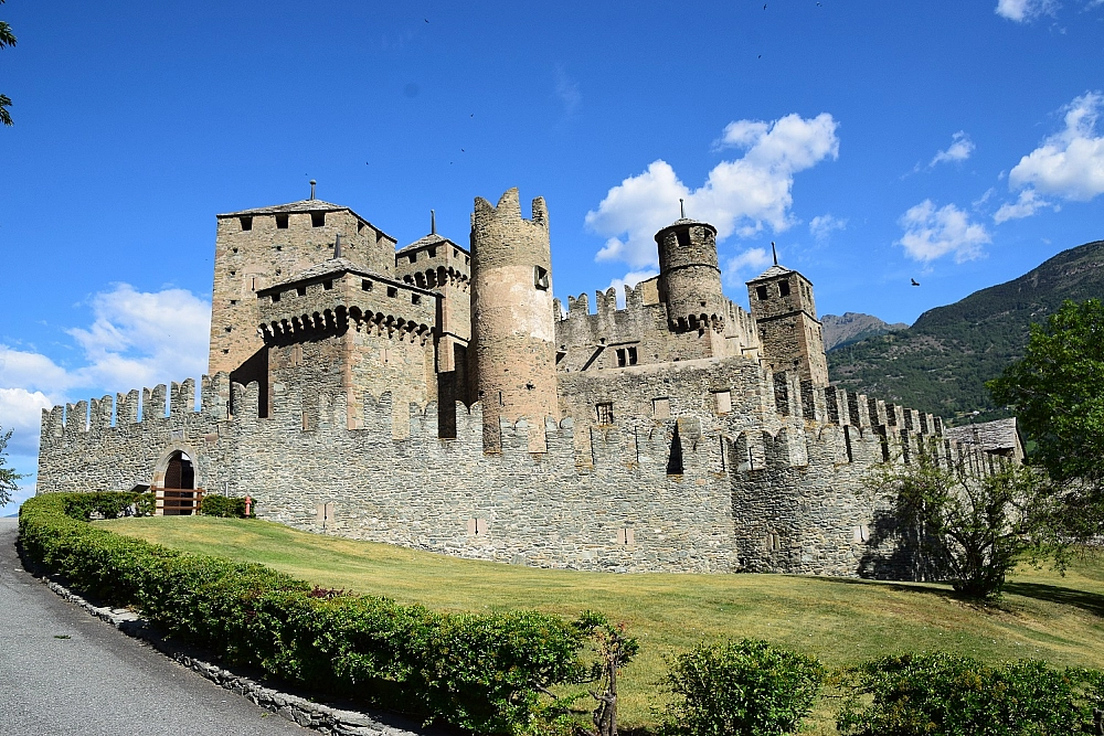 Partiamo da Mantova con destinazione Gressoney Saint-Jean per visitare il Castel Savoia. Sembra la dimora di una fata con le sue torri bianche che spiccano tra i colori di un giardino roccioso alpino; era la meta prediletta per i soggiorni estivi della Regina Margherita di Savoia. Posteggiamo le moto nel parcheggio libero adiacente il castello e acquistiamo il biglietto comprensivo di visita guidata (se si intendono visitare più castelli è bene tenere il biglietto e consegnarlo alla cassa del castello successivo per aver diritto ad uno sconto – sul retro della ricevuta sono elencati tutti i castelli che aderiscono a questa scontistica).
