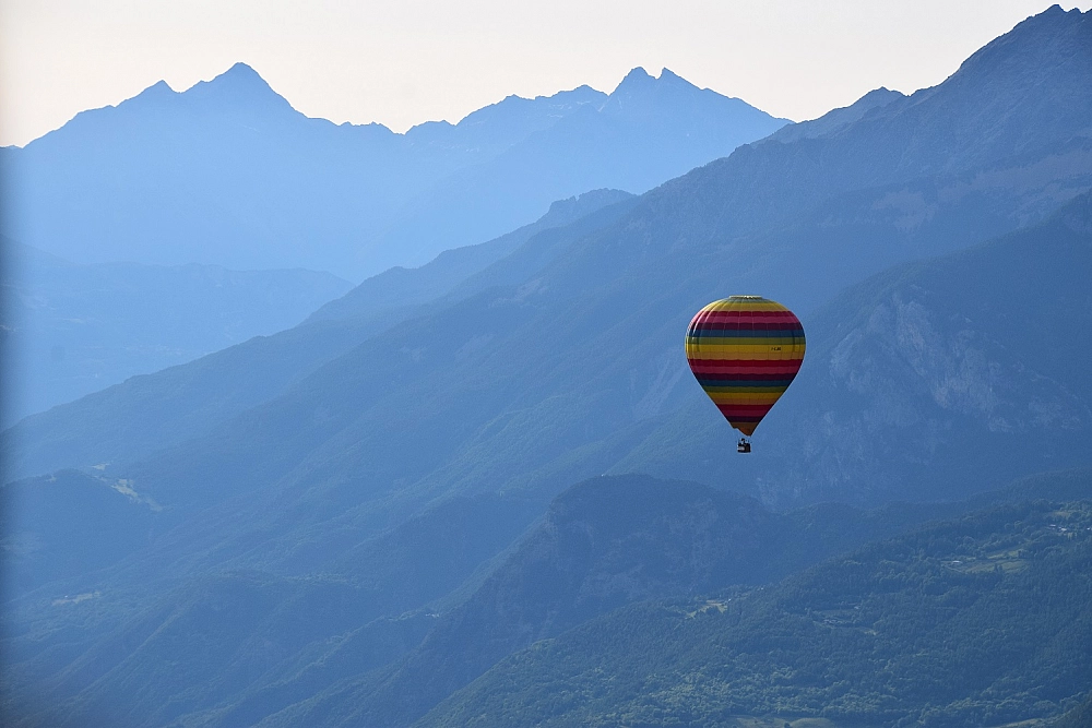 Il giorno dopo partiamo per Aosta, ci aspetta la realizzazione di un sogno nel cassetto: il volo in mongolfiera per ammirare i famosi 4000. Parcheggiamo le moto al punto di ritrovo e con i fuoristrada ci accompagnano in un piazzale dove inizia l’iter per il gonfiaggio delle mongolfiere. Li aiutiamo a scaricare i cesti e a tenere aperti i palloni, intanto che gli enormi ventilatori immettono aria calda. Il pallone prende forma lentamente e in poco tempo la nostra mongolfiera è pronta per la partenza. Piccolo briefing sulla sicurezza e poi via, si parte! Saliamo nelle ceste e pian piano ci stacchiamo da terra. Non sembra nemmeno di volare, ci troviamo a duemila metri senza nemmeno accorgerci, il silenzio è assoluto, viene interrotto ogni tanto dal rumore dell’immissione dell’aria calda nell’enorme pallone. Ci spostiamo lentamente, il pilota fa girare la mongolfiera su sé stessa per dare modo a tutti i passeggeri di ammirare il paesaggio e il grande Bianco (come lo chiamano gli abitanti della Valle D’Aosta) che fa capolino tra le montagne. Che emozione, non riesco a smettere di scattare foto! Dopo un’ora atterriamo in un prato, ci vengono a riprendere con il fuoristrada e ci riportano dove abbiamo lasciato le moto. L’unico commento negativo: “peccato, è durato troppo poco!”.