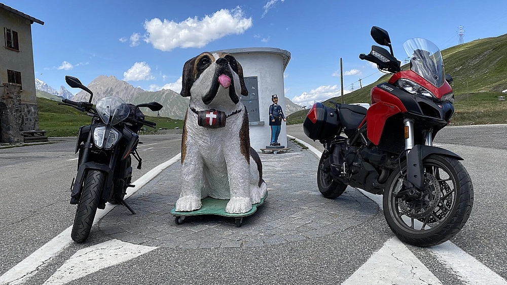 Ritorniamo motociclisti e riprendiamo la strada per raggiungere il Piccolo San Bernardo. Passiamo per La Thuile attraverso strade sempre tortuose e paesaggi mozzafiato, arriviamo al colle dove scattiamo la classica foto di rito al cartello e alla vecchia dogana. Ritorniamo via Pré Saint Didier per vedere lo spettacolare orrido ed anche per rinfrescarci un po’ all’ombra dell’enorme strapiombo, il caldo è veramente soffocante.