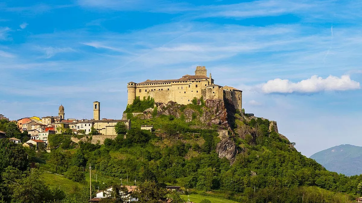 Il Castello di Bardi, anche chiamato Castello Landi, è una grande fortezza che sorge su uno sperone roccioso di diaspro rosso a Bardi, in provincia di Parma. L’edificio domina la confluenza del torrente Noveglia con il Ceno ed è un esempio straordinario del Medioevo italiano ed europeo. La fortezza è stata costruita dai Longobardi, da cui deriva il toponimo Bardi. La posizione geografica del castello sembra oggi molto defilata e fuori dalle rotte commerciali, ma, in passato, la valle del Ceno era molto importante ed era attraversata dalla via degli Abati. Il castello, che è anche conosciuto come Rocca di Bardi, è una meta turistica molto apprezzata, grazie alle leggende che lo circondano, come quella del fantasma di una giovane sposa che appare sulla torre.