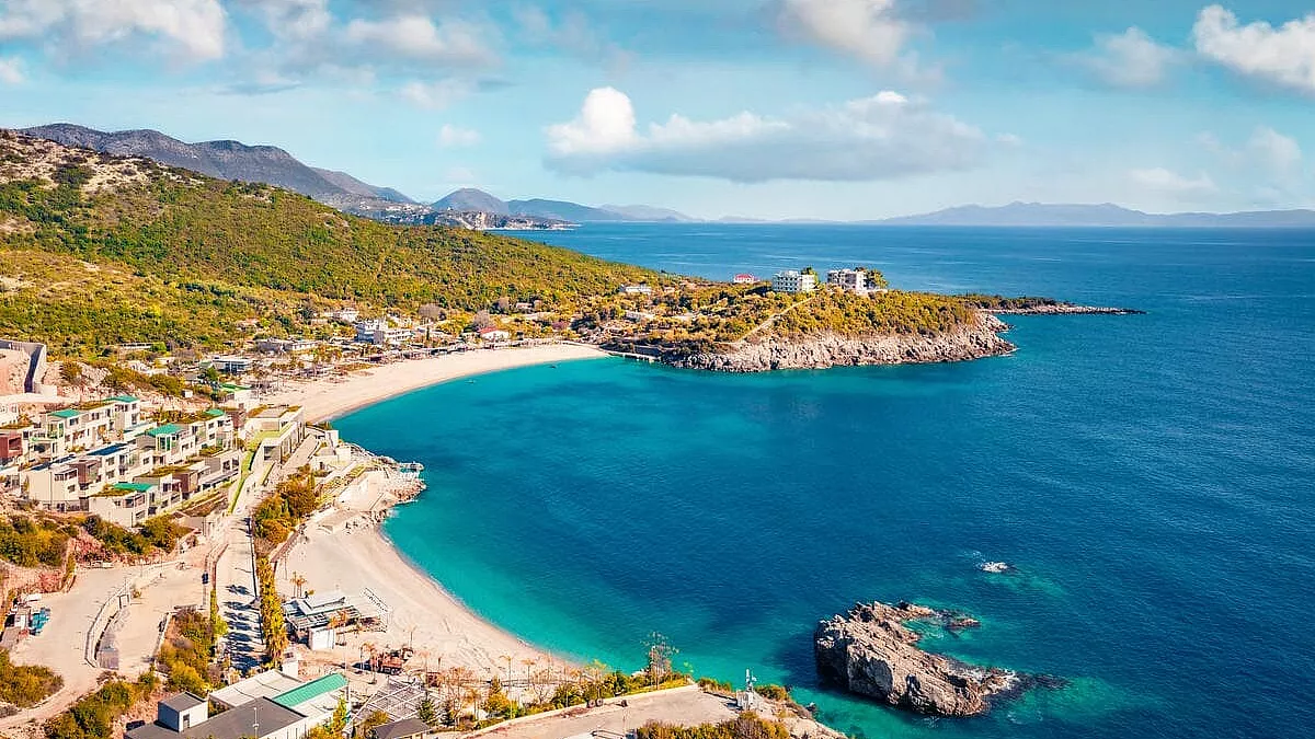 Quasi al confine con la Grecia, Ksamil è uno dei villaggi più interessanti della Riviera albanese. Situata nel Parco archeologico nazionale di Butrinto, è una popolare destinazione turistica soprattutto per le sue bellissime spiagge. Ksamil è anche una meta rinomata per gli sport acquatici e le immersioni.